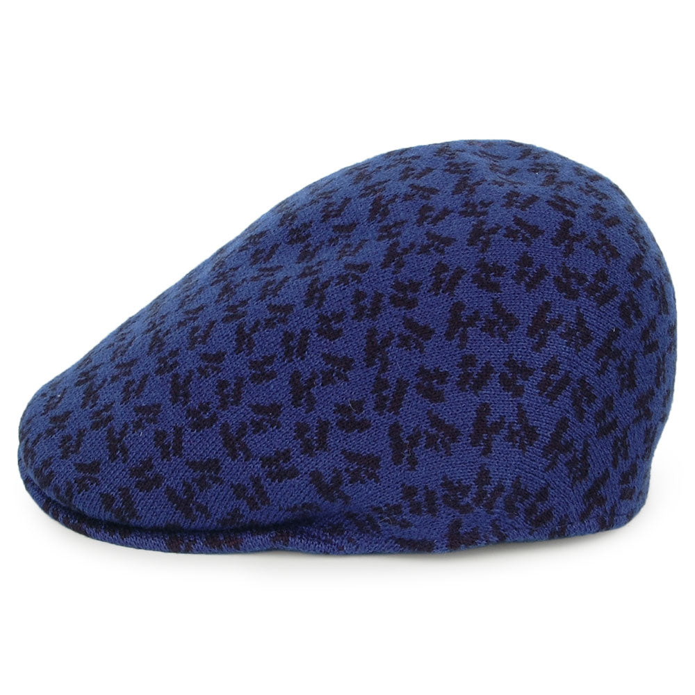 Dies ist die Square K 507 Schiebermütze in marineblau von Kangol. SIe verfügt über ein erstaunliches geometrisches Muster mit dem Buchstaben "K" auf dem ganzen Hut verteilt. Die 507 hat schmalere Seiten und eine insgesamt schlankere Passform im Vergleich zur Kangol 504.