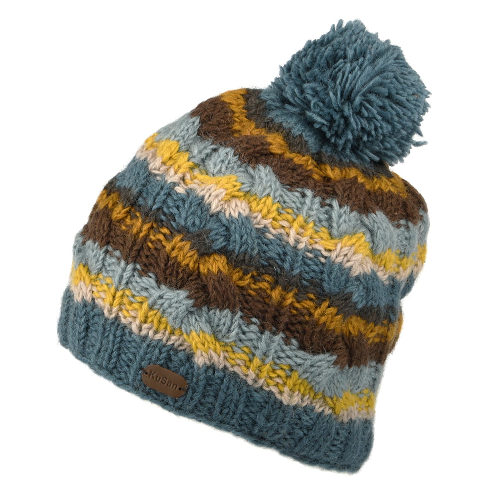 Kusan Cable Knit Bommelmütze gestreift - Blau-Multi