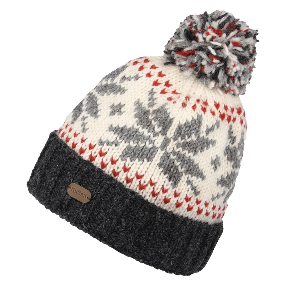 Kusan Schneeflocke Turn Up Bommelmütze - Grau-Creme