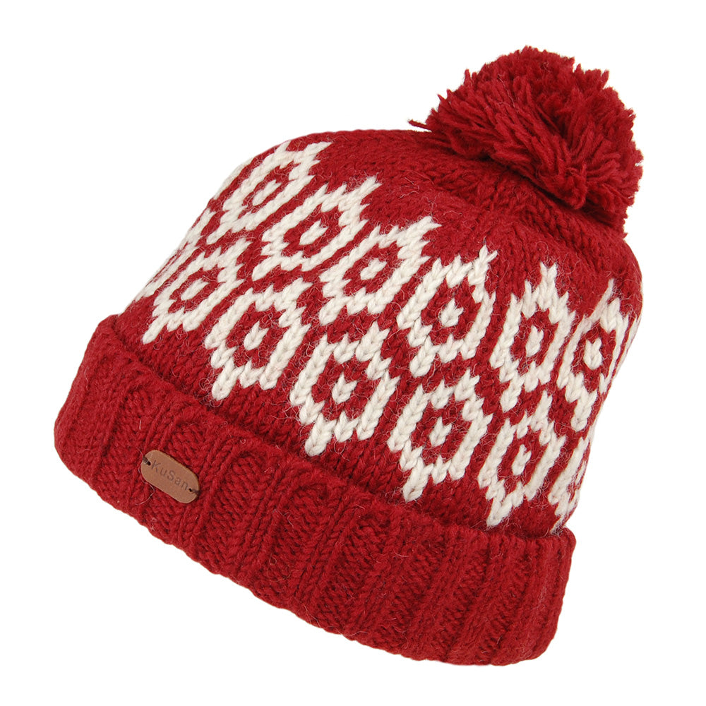 Kusan Turn Up Bommelmütze Gemustert - Rot