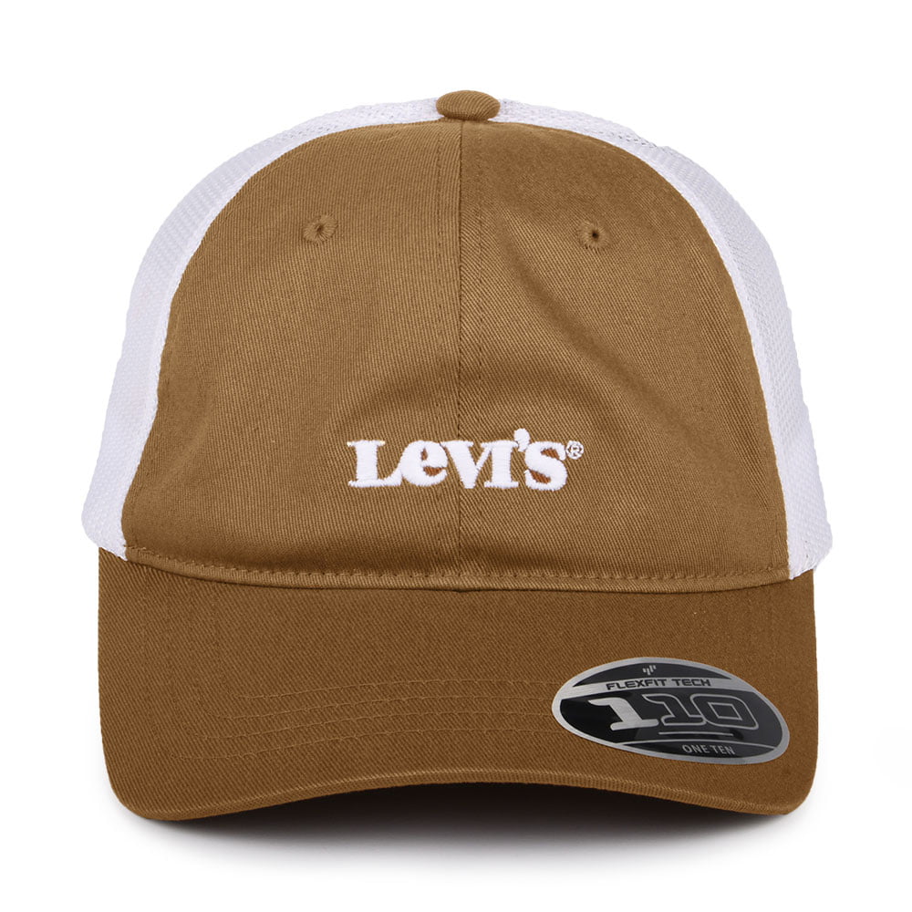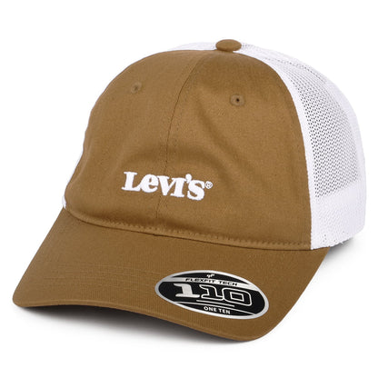 Hier ist die Levi’s Hats Vintage Modern Trucker Cap in khaki. Ein Levi’s Logo ist auf der Vorderseite der unstrukturierten Krone gestickt und die Rückseite ist auf Netzstoff, um die Belüftung zu fördern. Im Inneren befindet sich ein elastisches Flexfit-Schweißband für zusätzlichen Komfort. Ein verstellbarer Riemen an der Rückseite hilft dem Träger, seine perfekte Größe zu finden.