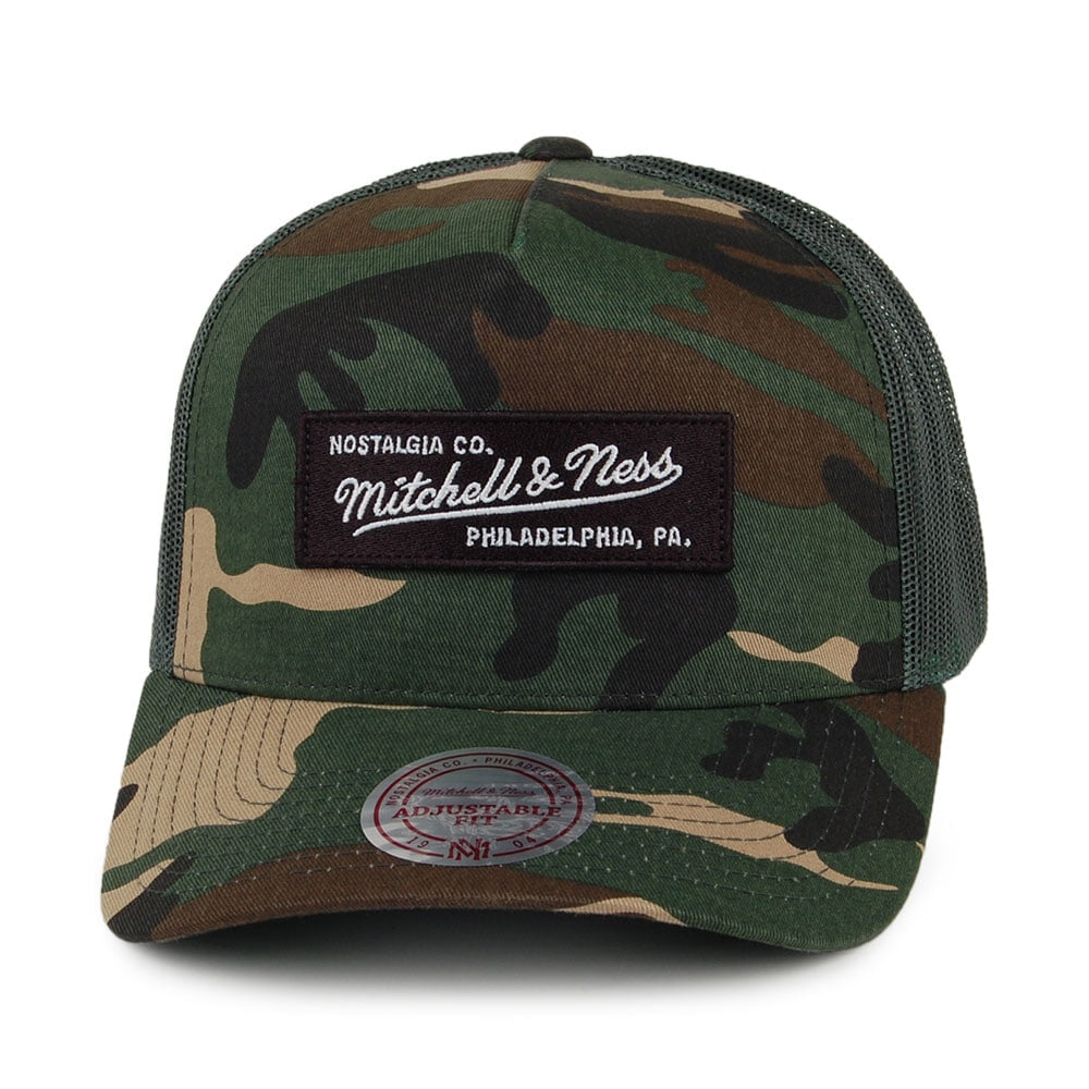 Dies ist die Mitchell & Ness Branded Box Logo Classic Trucker Cap in tarnfarben. Auf der Vorderseite befindet sich das Box Logo. Die Rückseite besteht aus Netzstoff aus 100% Polyester mit einem größenverstellbaren Riemen für einen perfekten Sitz.