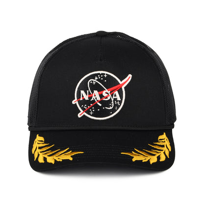 Die The General ist eine tolle neue Trucker Cap mit dem NASA Logo auf der Vorderseite und bestickten Federn auf dem Visier. Der Hut kommt mit einer vorgeformten Krempe und einem verstellbaren Riemen an der Rückseite für eine tolle Passform.