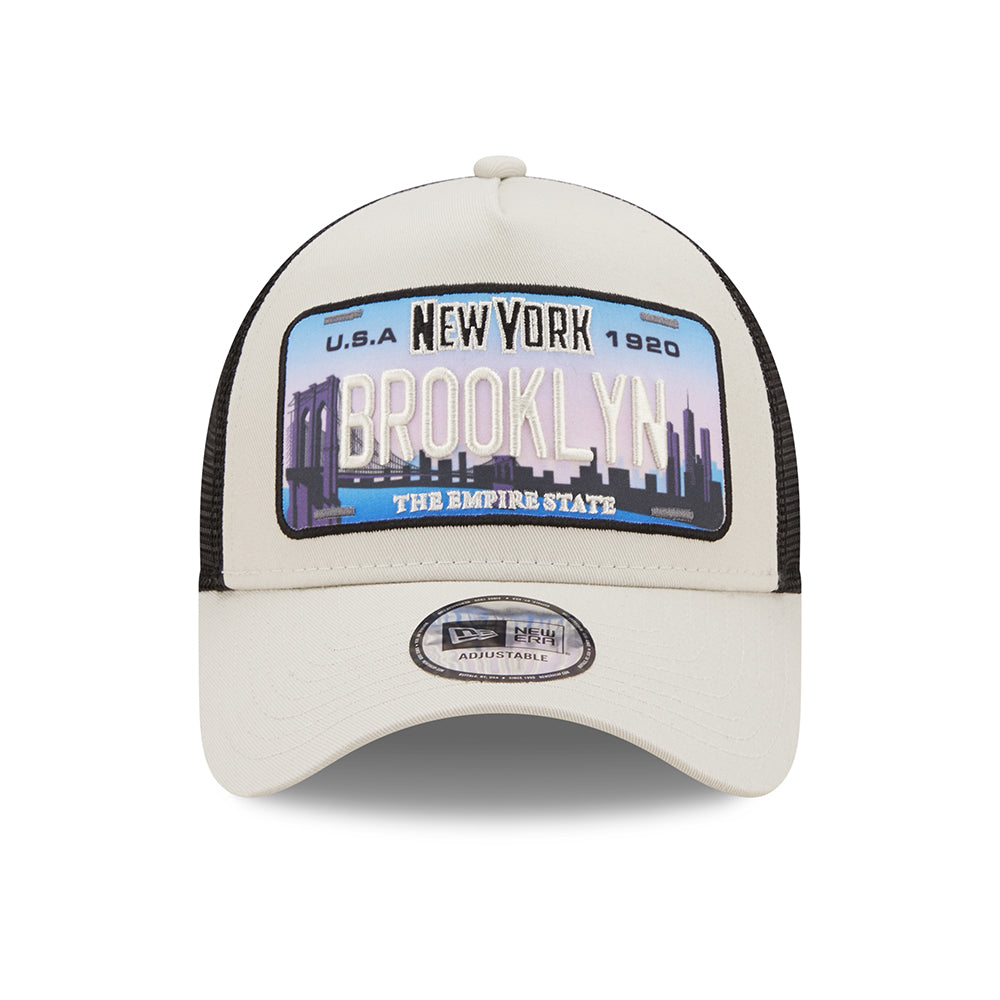 New Era 9FORTY A-Frame Brooklyn Trucker Cap - License Plate - Steingrau-Schwarz