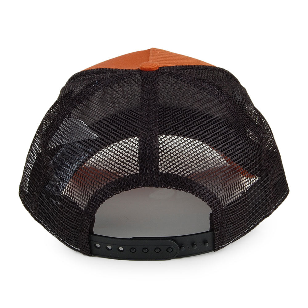 Das ist die New Era A Frame New York Yankees Trucker Cap MLB League Essential in rostrot-schwarz. Das Material besteht aus 100% Baumwolle und die Rückseite aus Netzstoff. Sie trägt das Team Logo auf der Vorderseite aufgestickt dazu ein weiteres kleines Logo auf der Seite der Cap. Ein größenverstellbarer Riemen am Hinterkopf sorgt für einen perfekten Sitz.