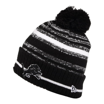 New Era Detroit Lions Bommelmütze - NFL Sport Knit - Schwarz-Weiß