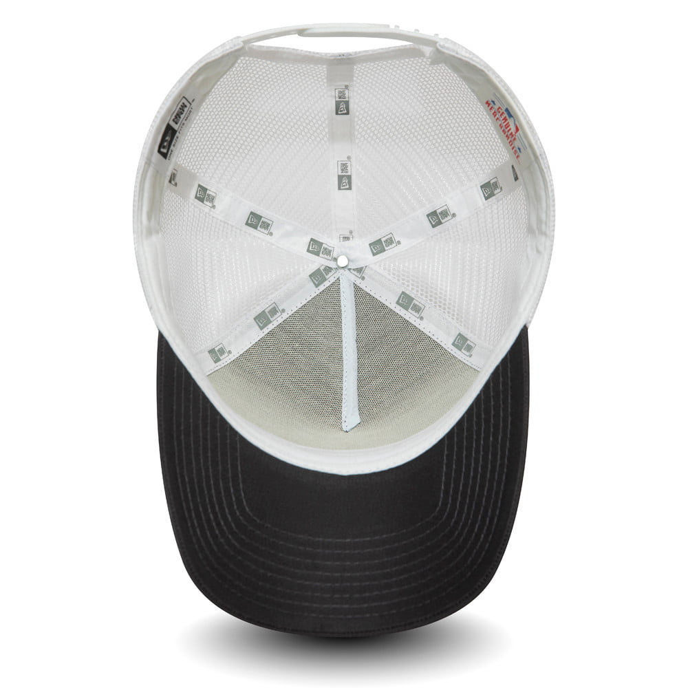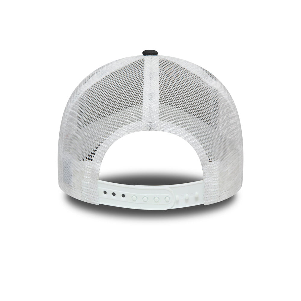 New Era L.A. Dodgers MLB League Essential Trucker Cap in grau-pink. Die Mütze hat eine Baumwollfront mit dem Team-Logo in der Mitte bestickt und eine Netzrückseite aus Polyester. Die New Era Flagge ist auf der Seite bestickt und es gibt einen verstellbaren Riemen an der Hutrückseite für eine gute Passform.