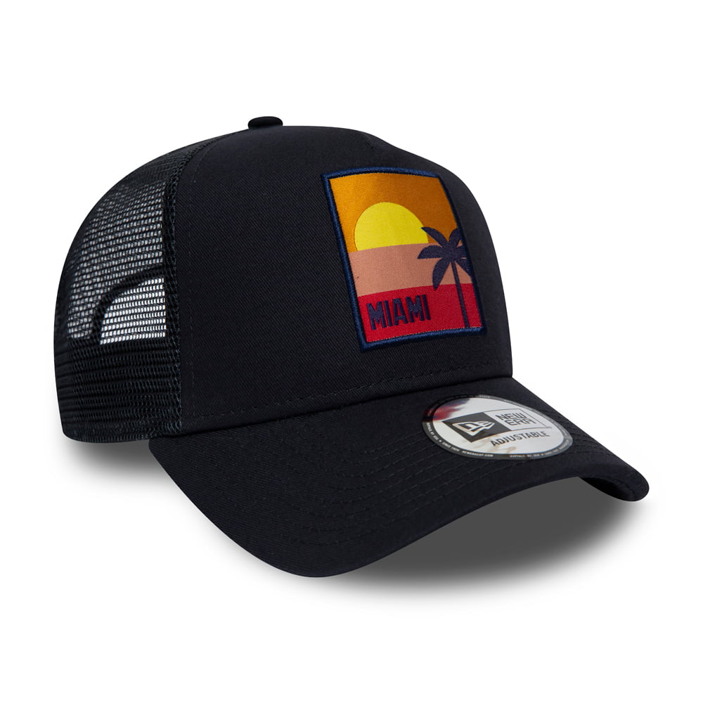 Dies ist die New Era Miami Location Trucker Cap in marineblau. Die Cap verfügt über eine Miami-Grafik auf der Vorderseite der Kappe. Die Netzrückseite hält Sie angenehm kühl und der verstellbare Riemen sorgt für eine gute Passform.