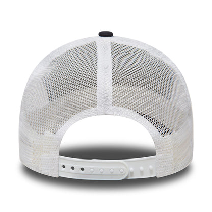 Dies ist die New Era New York Yankees Trucker Cap in blau. Die Cap hat auf der Vorderseite ein Yankees-Logo in 3D aufgestickt. Die Rückseite der Cap besteht aus Netzstoff. Das New Era-Logo ist auf der linken Seite der Cap aufgestickt. Zudem hat die Cap ein vorgebogenes Visier und einen größenverstellbaren Riemen auf der Rückseite.