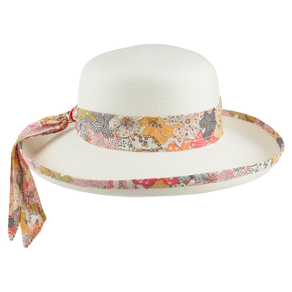 Verpassen Sie nicht diesen atemberaubenden Liberty Floral Panama Sonnenhut von Olney. Dieser wunderschöne Hut ist aus Panama-Stroh gefertigt und hat eine 8 cm breite Krempe, die Ihnen einen ausgezeichneten Schatten von der Sonne bietet wird. Außerdem verfügt dieser Hut über einem Hutband mit dem Liberty Blumen Muster die die Krone umgibt und mit einer Schleife auf der Rückseite vollendet. Auf der Innenseite des Hutes befindet sich ein Schweißband aus Nylon, dass Feuchtigkeit aufnimmt und Sie angenehm und trocken hält.