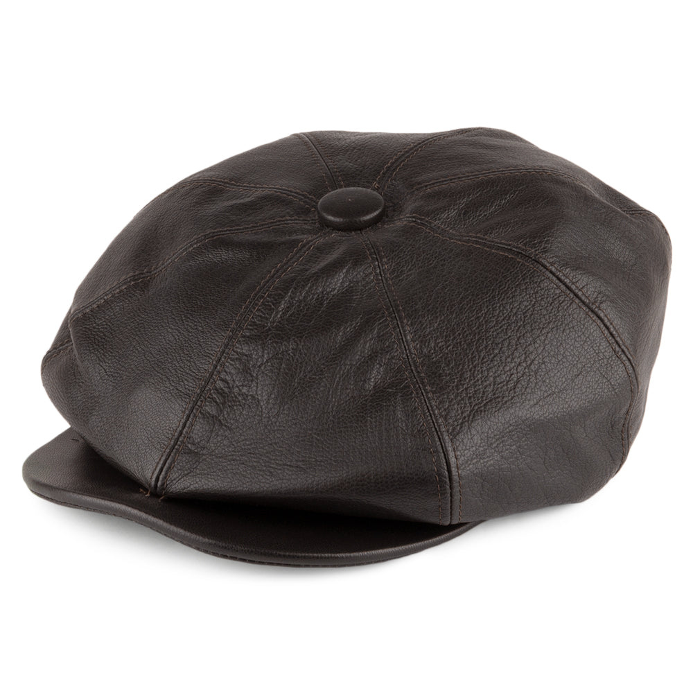 Diese Olney Urban Ballonmütze in Braun besteht aus einem außergewöhnlich hochwertigen Leder. Weich, leicht und cremig. Diese Ballonmütze verfügt über 8 Paneelen und ist an der Krempe angenäht. Außerdem ist diese Mütze aus Satin gefüttert.
