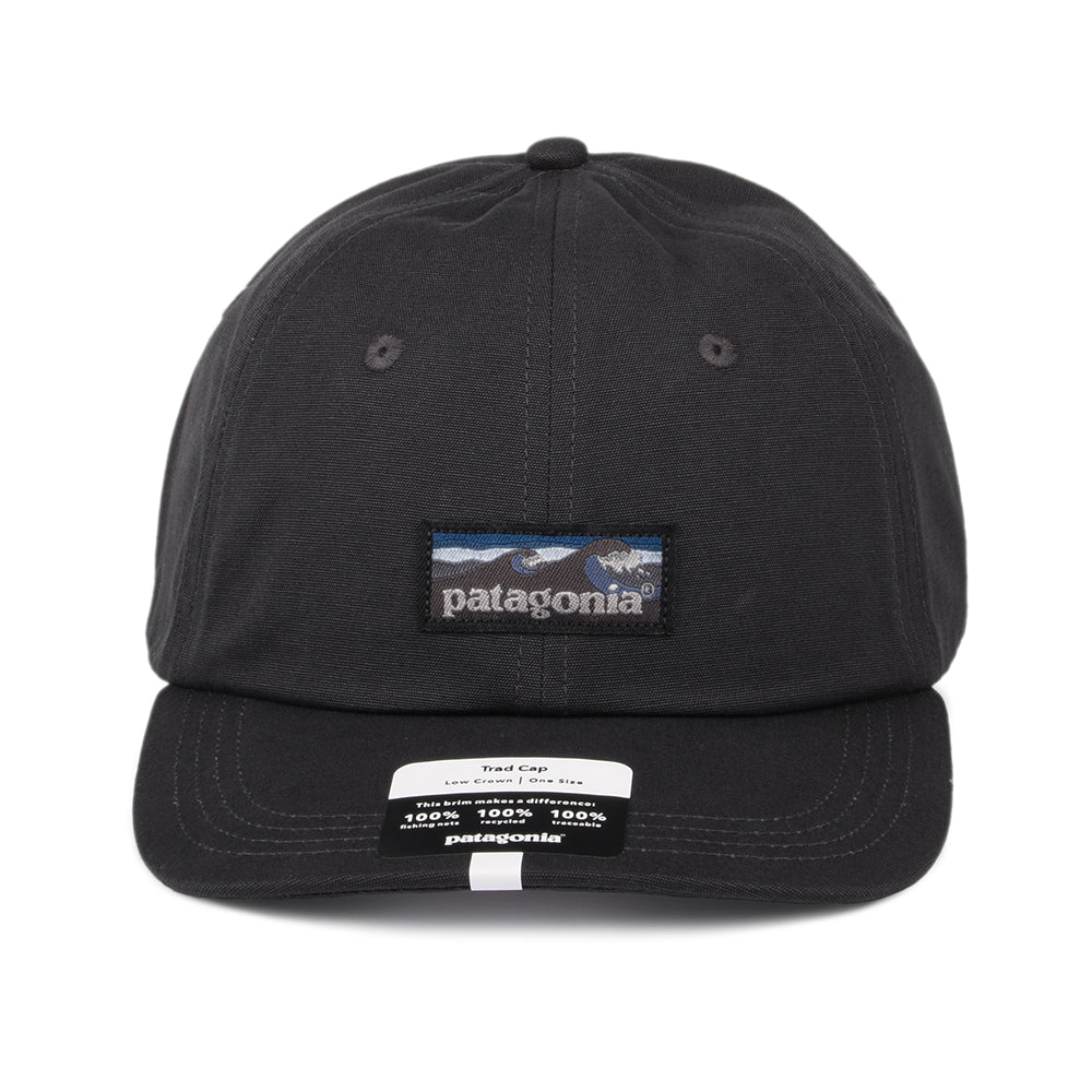 Die Boardshort Label Trad Baseball Cap in dunkelgrau ist ein neuer Style von Patagonia. Diese Baseballkappe verfügt über eine unstrukturierte Krone aus 100% Bio-Baumwolle und eine flache Krempe aus Bureos 100% recycelten Fischnetzen. Auf der Vorderseite ist ein Patagonia-Patch angenäht und neben dem verstellbaren Riemen auf der Rückseite befindet sich ein Patagonia-Fliptag.
