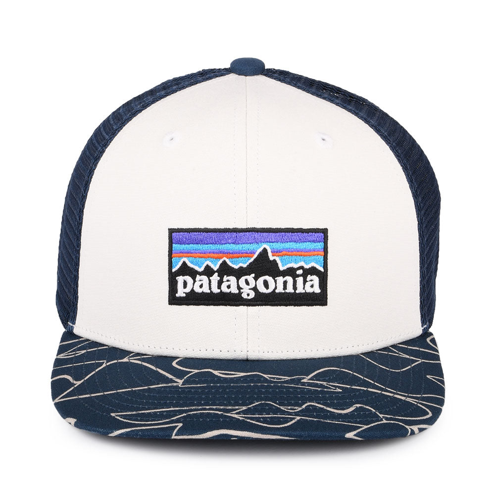 Patagonia Kinder P-6 Logo Trucker Cap aus organischer Baumwolle - Weiß-Blau
