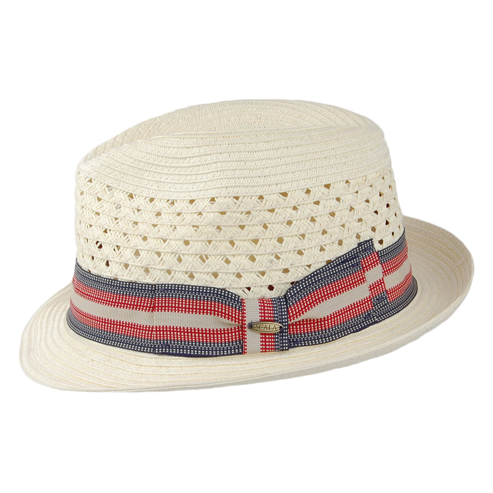 Scala Baytown Vented Fedora Hut aus geflochtenem Papier - Elfenbein
