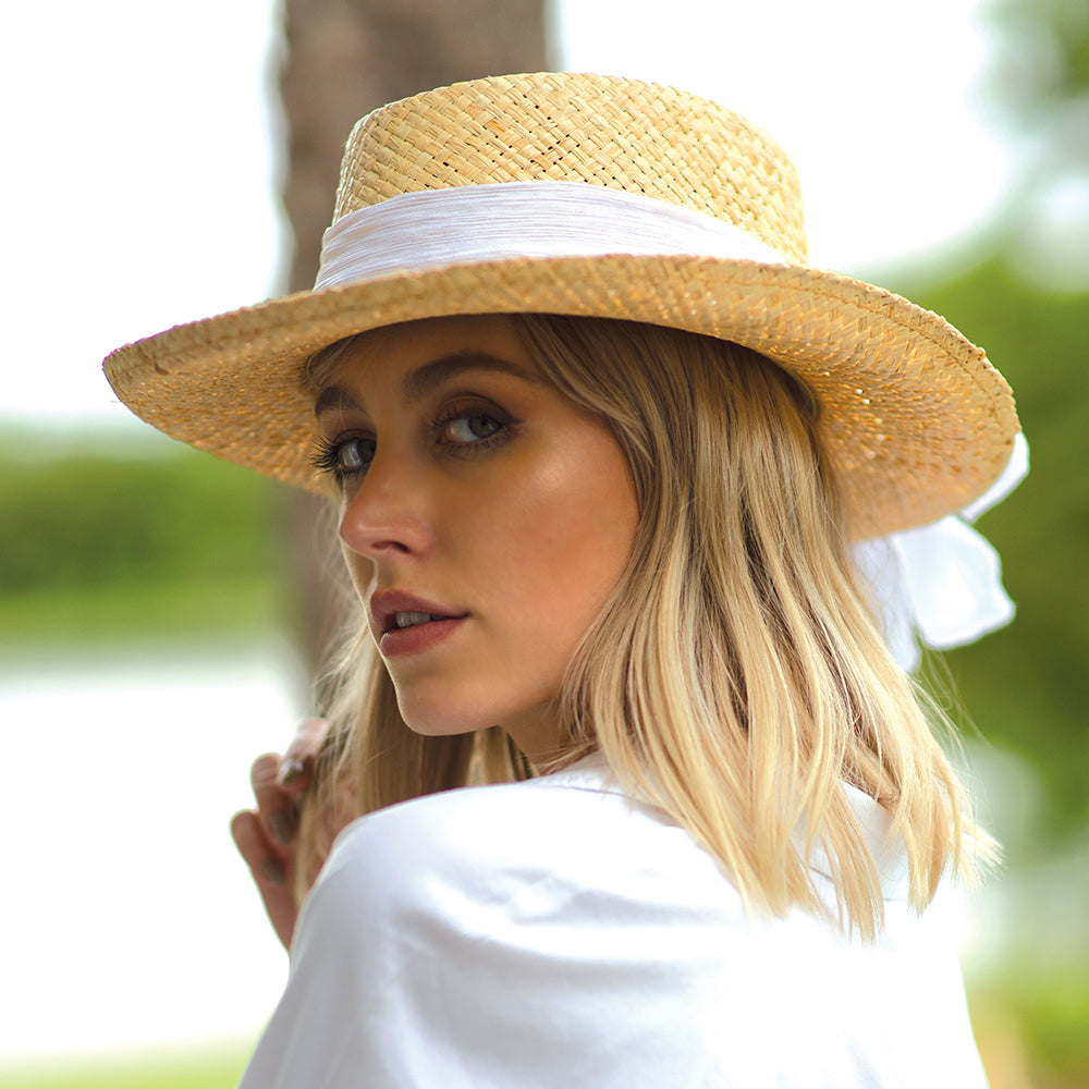 Scala Gambler Hut aus Raffia mit Schleife - Natur-Weiß