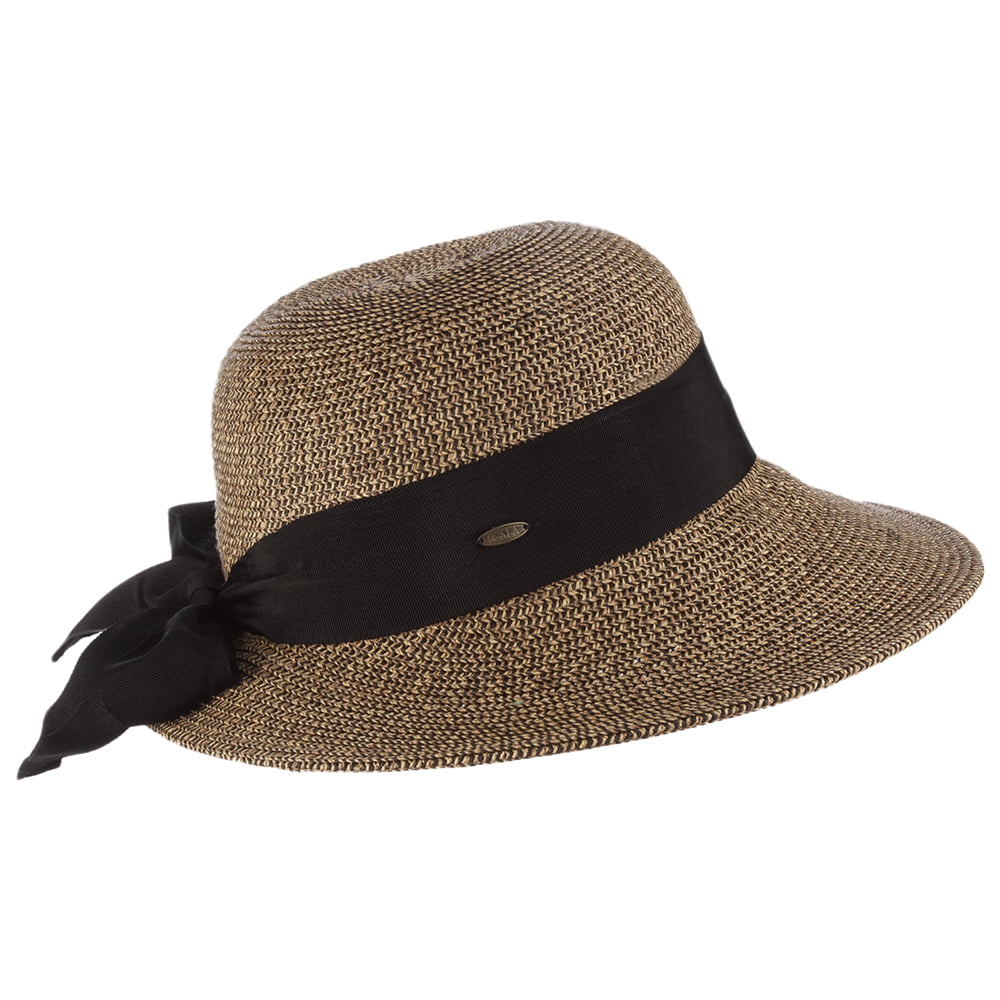 Scala Sonnenhut aus Stroh Ripsband Schleife - Natur-Schwarz