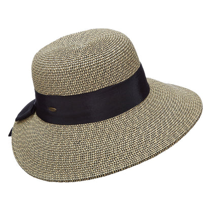 Scala Sonnenhut aus Stroh Ripsband Schleife - Weizen-Schwarz