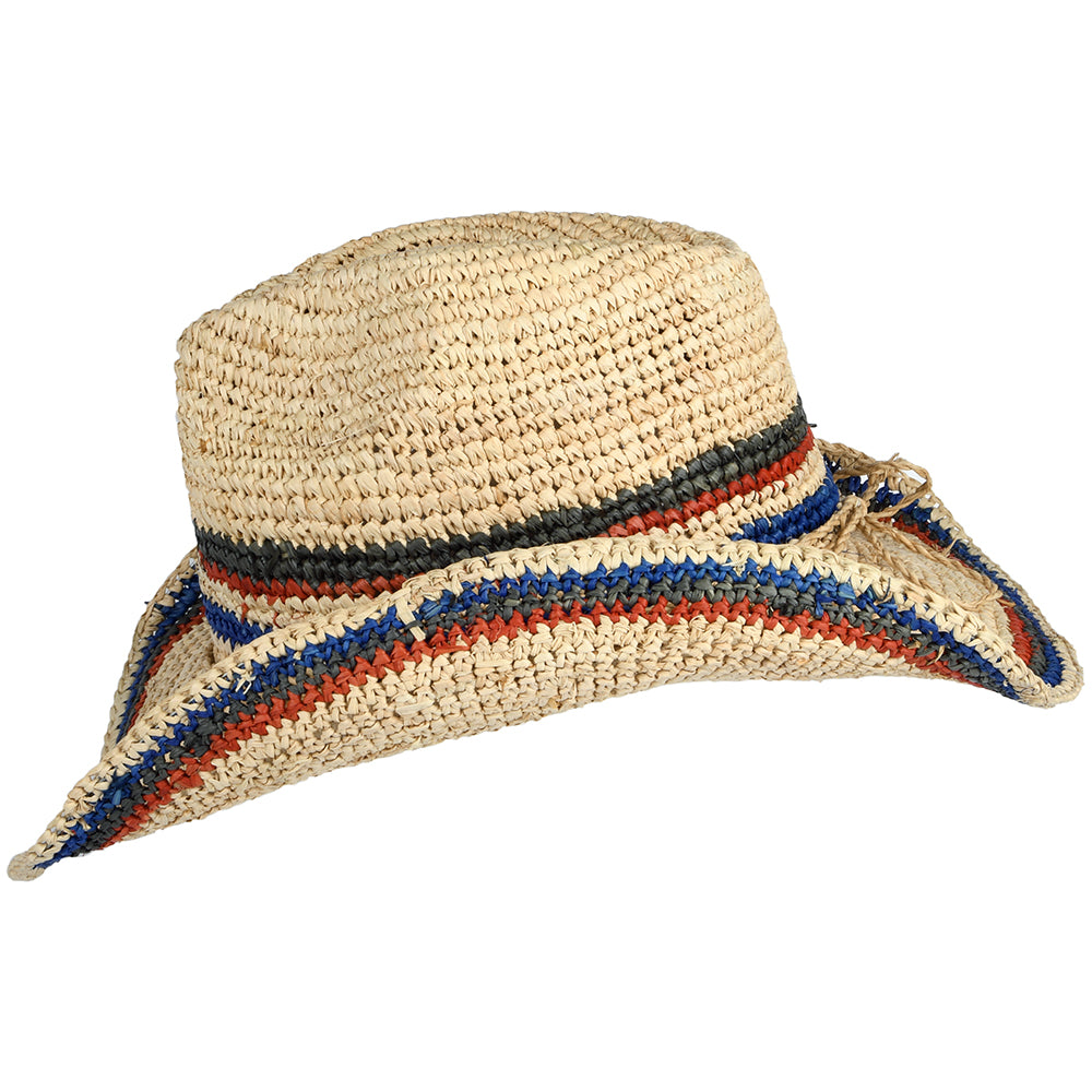 Scala Trezza Gehäkelter Cowboy Hut aus Raffia-Stroh - Dunkles Natur