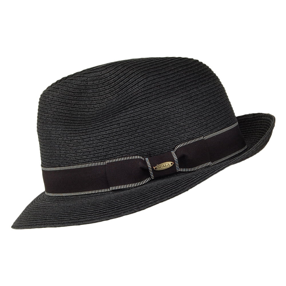 Scala Wyatt Fedora Hut Feingeflochten aus Toyo Stroh - Schwarz