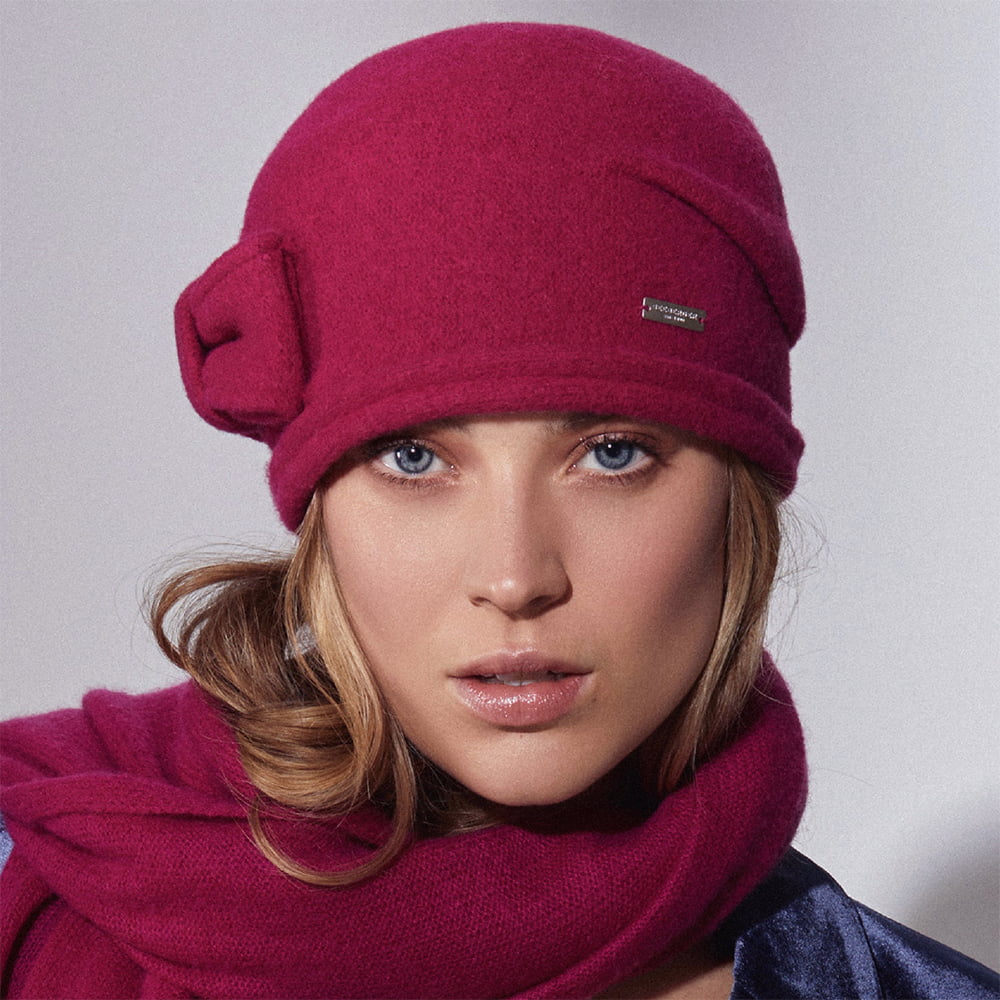 Seeberger Boiled Glockenhut aus Schurwolle mit Schleife - Beerenfarben