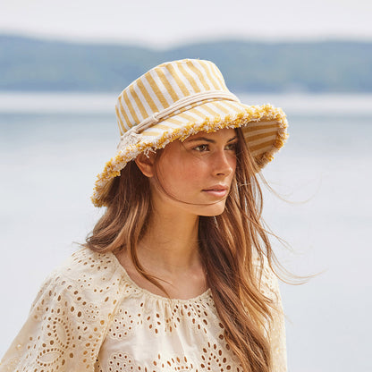 Seeberger Fischerhut gestreift aus Baumwolle - Cremefarben-Honig
