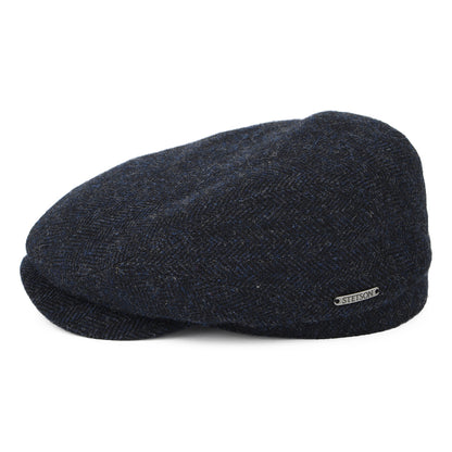Stetson Schiebermütze mit Fischgrätmuster aus Wolle - Marineblau