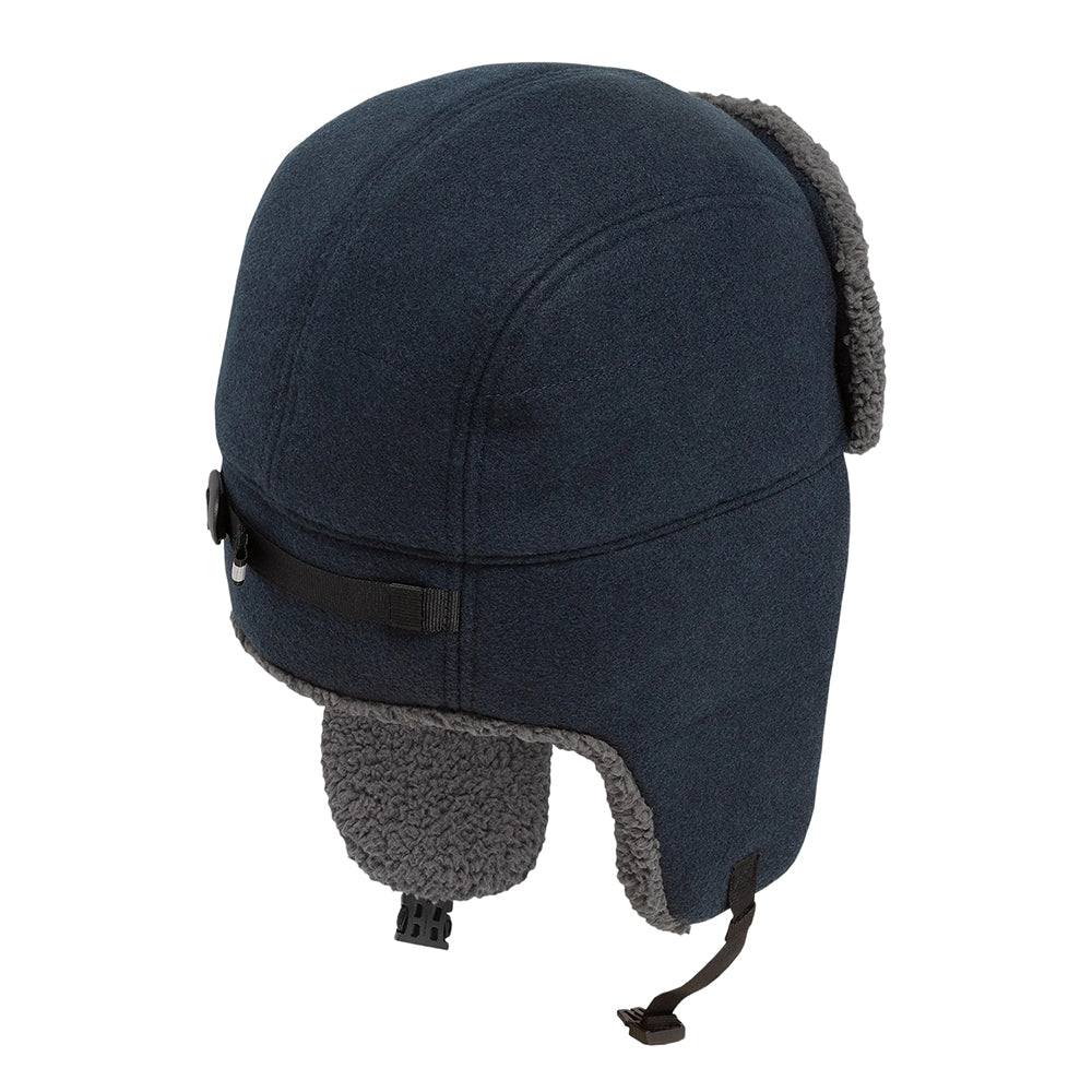 Hier ist der Sunday Afternoons Bluster Trapper Hat in dunkles marineblau. Dieser Hut aus recyceltem Polyester verfügt über mit Sherpa gefütterte Ohrenklappen, die nach oben oder unten getragen werden können. Das gesteppte Futter sorgt für zusätzliche Wärme, während ein verstellbarer Riemen am Rücken für eine perfekte Passform sorgt. Der Hut hat auch einen UPF 50+ Sonnenschutz, perfekt für die sonnigen Wintertage.