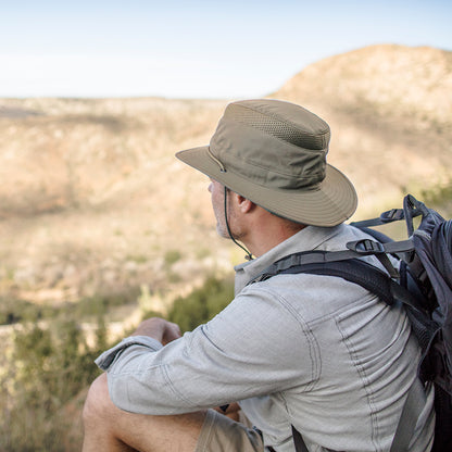 Dies ist der Sunday Afternoons Charter Escape Sonnenhut in der Farbe Sand. Der Hut verfügt über eine Krone aus Netzstoff für eine optimale Belüftung, sowie einen UPF 50+ Sonnenschutz. Es gibt einen Kinnriemen, um den Hut auch bei windigem Wetter sicher auf dem Kopf zu behalten. Ein großartiger Stil für jedes Abenteuer im Freien.