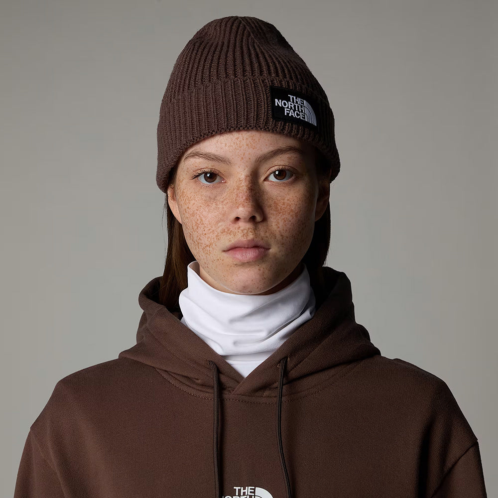 The North Face TNF Logo Box Cuffed Fisherman Beanie Mütze - Rauchbraun