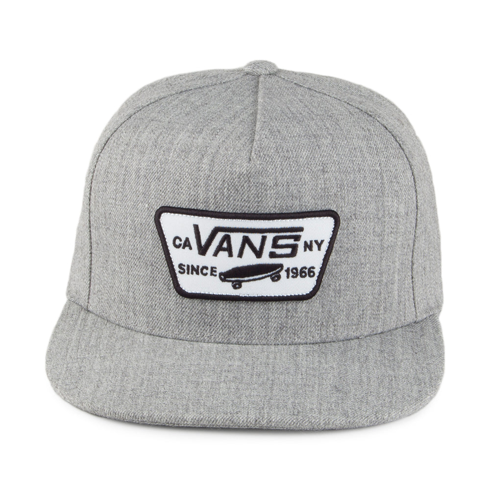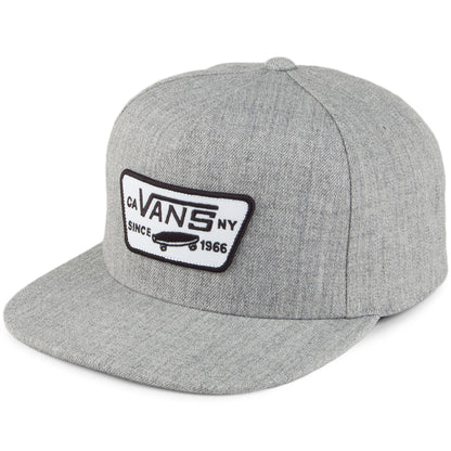 Dies ist die Full Patch Snapback Cap von Vans in Grau meliert. Diese einfache Cap hat das Vans-Logo auf der Vorderseite aufgestickt und in der Krone befinden sich Belüftungslöcher für maximale Atmungsaktivität. Neben dem größenverstellbaren Riemen ist ein kleines Vans-Logo.