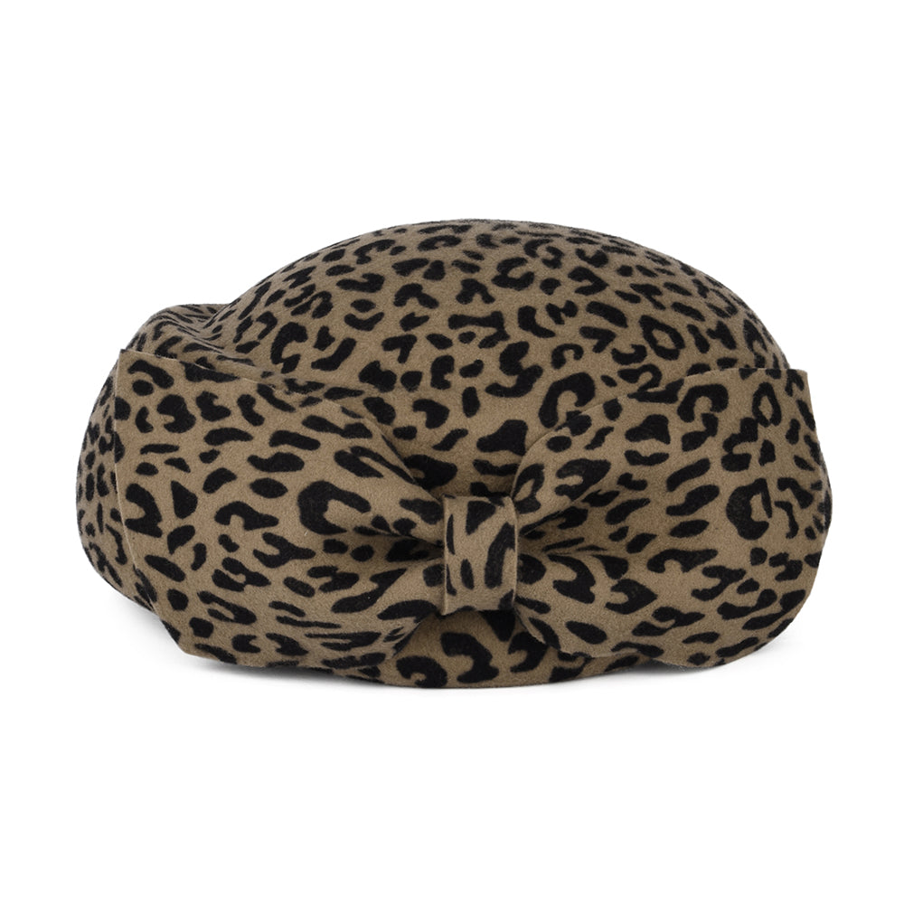 Whiteley Avery Pillbox Hut aus Wolle mit Schleife - Leopardenmuster