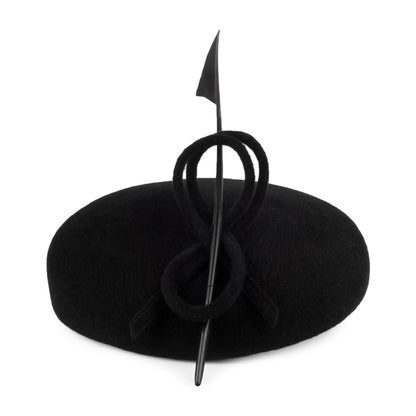 Whiteley Baskenmütze aus Haarfilz mit Feder - Schwarz